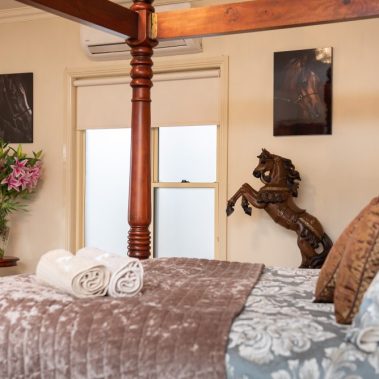 The Heartland suite is situated on the far side of the main homestead although completely separate and totally private.  A tastefully decorated peaceful and private escape for two in a garden setting on an operational horse farm. A touch of romance huddled in a luxurious four-posted bed with the wood fire burning. All provisions for a self-catered hot breakfast included for your stay. Come and wander the paddocks, tour the barn meet our Arabian horses. Experience life in a horse lovers paradise. Enjoy the country living in a tranquil setting.